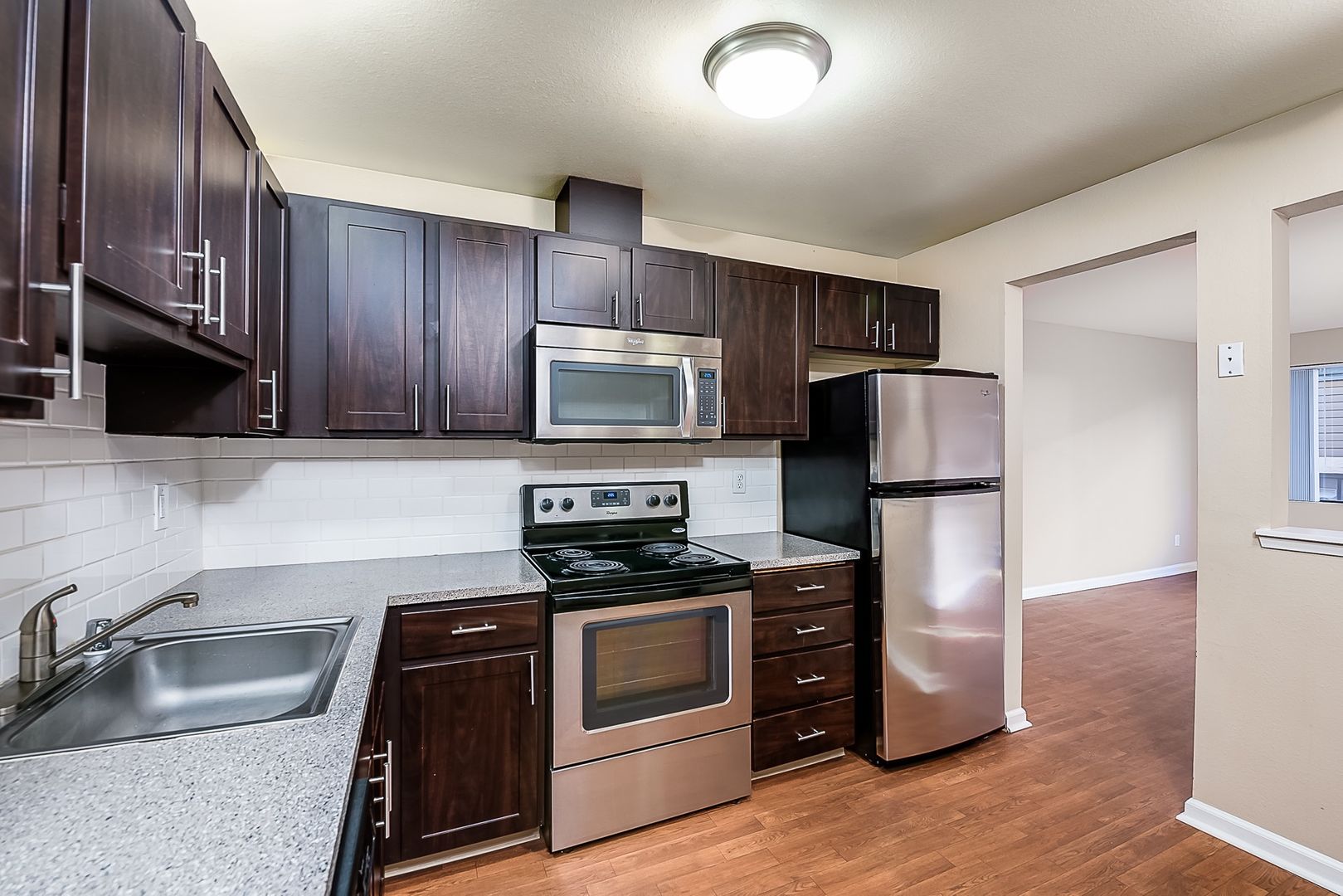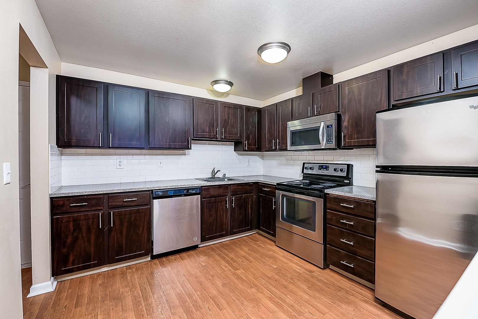 • Stainless steel appliances (microwave, dishwasher, fridge)