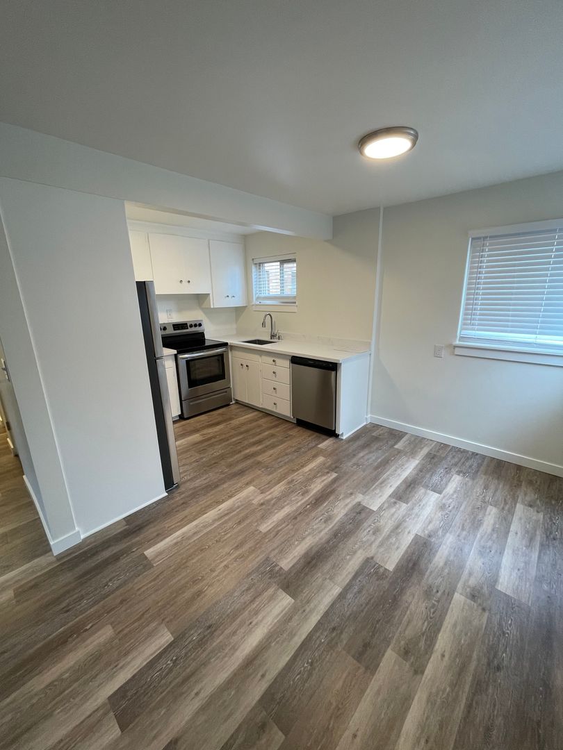 Loyal Heights Apartments has a beautiful and newly renovated unit on the first floor which is a 2 bedroom, 1 bathroom and will be available for move in early November. It is conveniently located in North Ballard near many shops, restaurants and walking distance from Golden Gardens Park. This apartment features new stainless-steel appliances, hardwood flooring, a dishwasher, in unit washer and dryer and a beautiful kitchen. This unit is pet friendly and has one parking spot for an additional charge. Additional information is provided below.