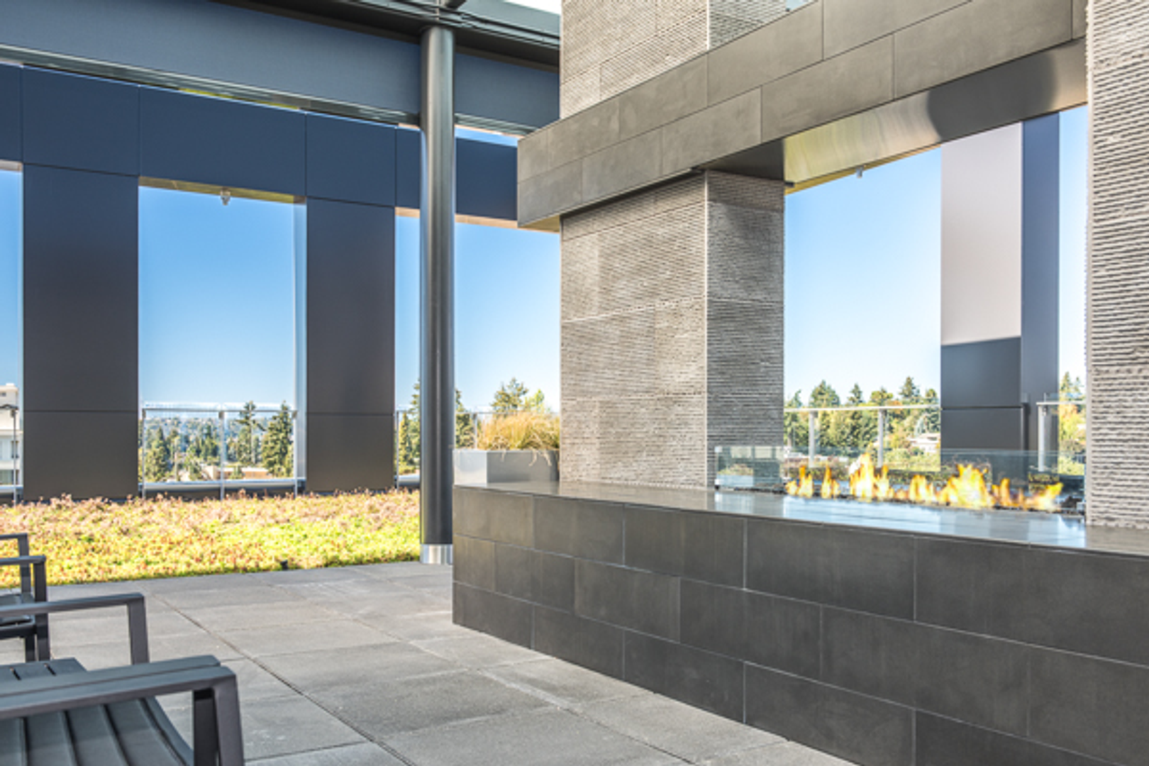 • Rooftop terrace with spacious sun deck, bocce ball court, and fireplace