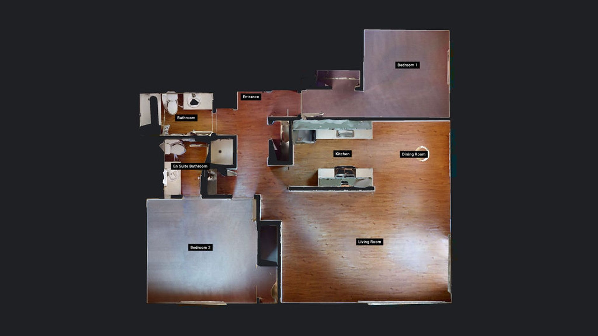 • Hardwood flooring in living areas, carpet in bedrooms